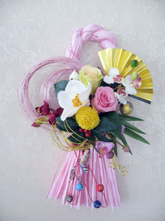 おめでたい飾りをプラスして、華やかに飾り、新しい一年を迎える飾り。